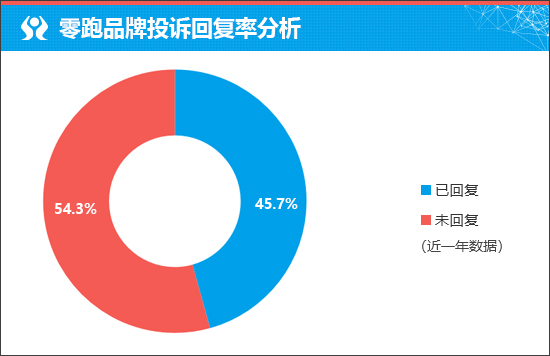 在衡量新车售后服务口碑方面,我们将通过企业对于车主投诉的回复情况进行分析,相对客观地对于新车未来的售后服务口碑有所预判。据车质网数据显示,近一年零跑品牌的投诉回复率为45.7%,可见厂家对于已出现的问题解决态度并不积极,对于车主诉求的重视程度有待加强。