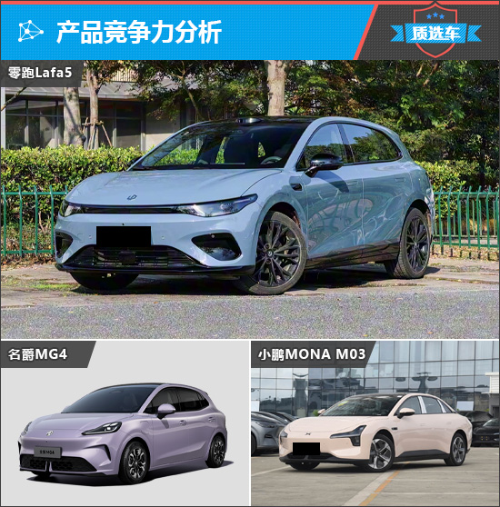 目前国内市场中,与零跑Lafa5定位接近的车型并不多。从车身形态来看,名爵MG4同样为两厢造型且主打运动,可形成直接竞争。此外,小鹏MONA M03受众以年轻群体为主,强调性价比,与零跑Lafa5在潜在用户上也存在交集。