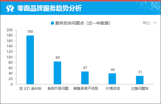 从服务投诉问题点来看,“定(订)金纠纷”成为车主投诉相对较多的服务问题。通过进一步分析可知,该问题主要来自零跑C10车型。
